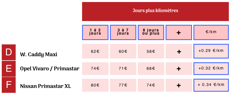 De plus, nous pouvons vous proposer une large gamme de fourgons de location, allant de 5 à 6,20 mètres de longueur, tous dotés de plus de 120 ch. Il est à noter que tous nos fourgons sont équipés de la climatisation et d’un port USB. Si vous avez déjà décidé de louer un van sur la Costa Brava, contactez-nous et ne le manquez pas.